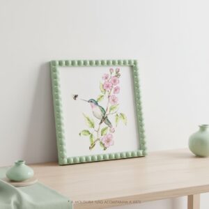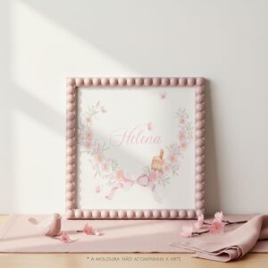 Moldura Luna Bubble Quadro Madeira com Bolinhas Na Cor Rosa Seco
