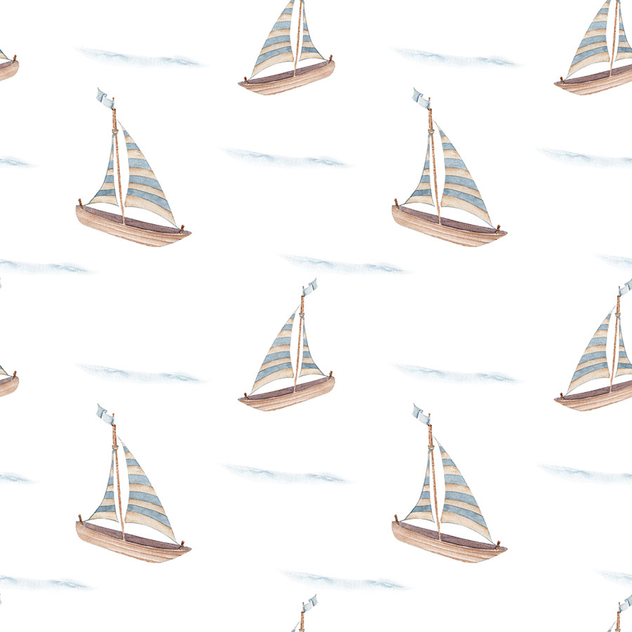 Tag: aquarelado, azul e bege, barquinhos, decoração de praia, papel de parede náutico, quarto de menino, tema marítimo